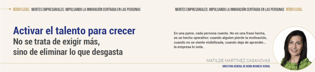 Nota editorial: Publicado originalmente en la revista Mundo Empresarial, en la sección Mentes empresariales: impulsando la innovación centrada en las personas (nº 182, julio de 2025), págs. 36–37. Autora: Matilde Martínez Casanovas, directora general de IGEMA Business School.